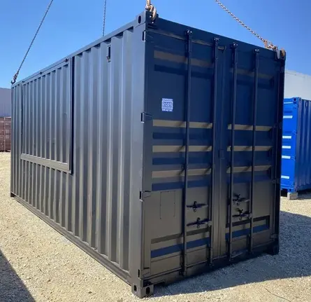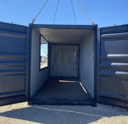 - Une fenêtre est située sur le long mur du conteneur, offrant une excellente visibilité et luminosité naturelle à l’intérieur.