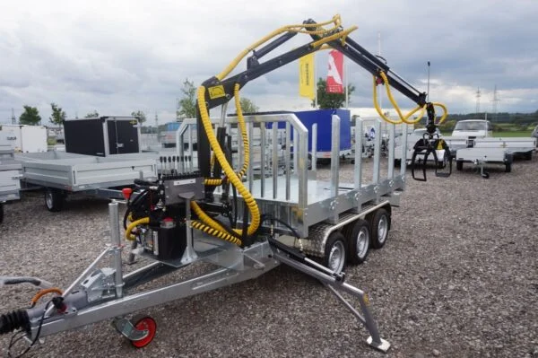 Informations sur le produit « Remorque de transport de bois HT353017-K avec grue de chargement Jansen, surface de chargement (entre les ranchers) env. 3,00 x 1,49 m »